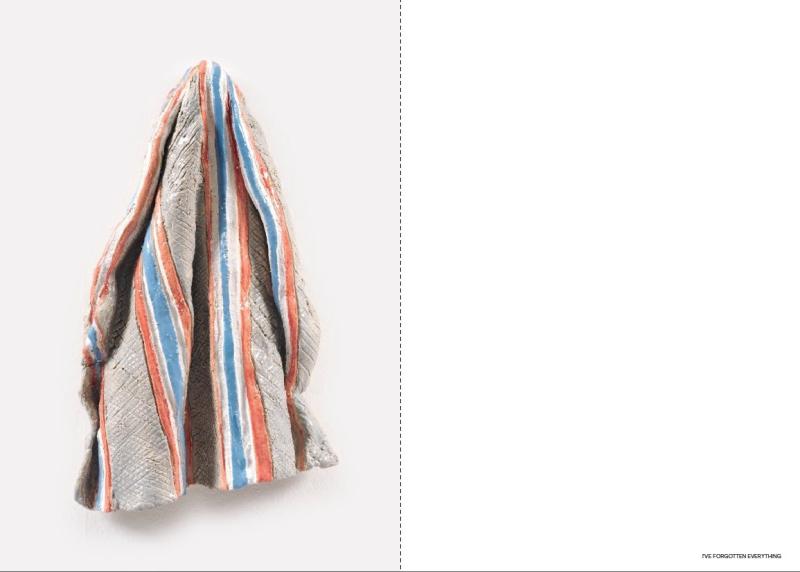 Mit Blick auf diese kultur- und kunstgeschichtliche Tradition lassen sich die aktuellen Arbeiten Marco Zumbés nicht nur als künstlerisches und formales Experiment, sondern mehr wie eine exemplarische Studie zum Thema des Inte rieurs begreifen. In früheren Werken widmete er sich bereits Oberflächen und Alltagsgegenständen des Interieurs – mit den Küchentüchern spitzt er diese Betrachtung jetzt wie unter einem Brennglas zu. Die Tücher, die in der täglichen Hausarbeit zum Einsatz kommen und die in Anlehnung an den Materialgedanken der Arte Povera als „armes Material“ gelten können, werden zwar nicht selbst als künstlerisches Material genutzt, sondern vielmehr zum Bildgegenstand erhoben. Der Künstler dekliniert verschiedene „Zustände“ der Gebrauchstextilien durch: ausgebreitet, aber mit sanften Wellen und Falten versehen, bringt er sie auf die Leinwand; säuberlich gefaltet und gestapelt werden sie zu keramischen Skulpturen oder hängen scheinbar locker, nur ihrem eigenen Gewicht und der Schwerkraft folgend wie ein organisches Relief an der Wand.